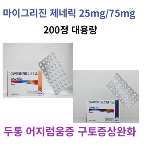 [CINAPAD 25mg / CINAPAD 75mg] 마이그리진 제네릭 200정 – 두통, 어지럼증, 구토 증상 완화