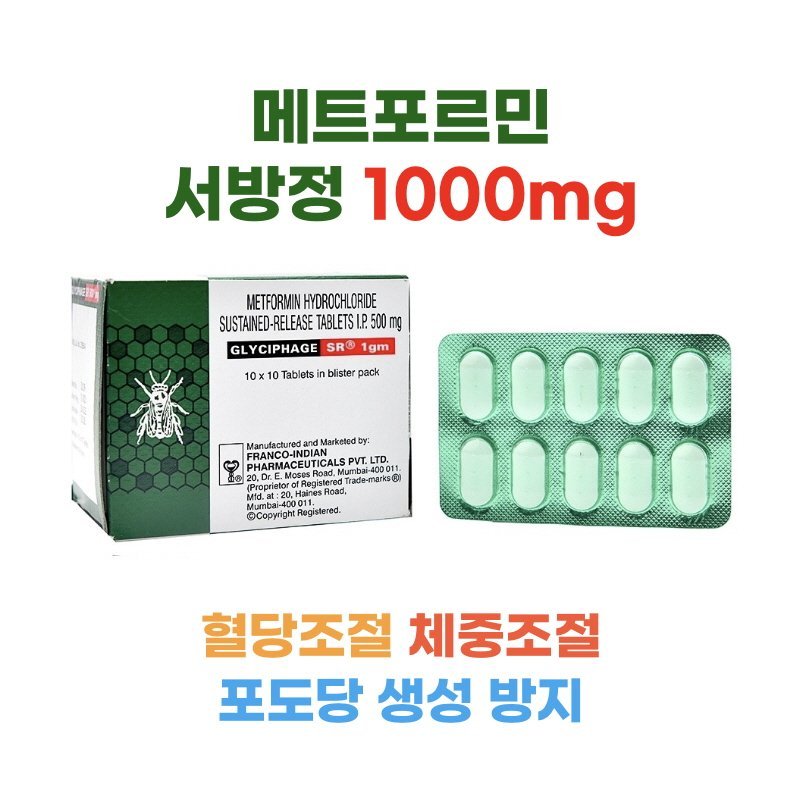 Glyciphage SR 1000mg은 메트포르민 서방정(Metformin Sustained Release) 1000mg 성분의 제2형 당뇨병 치료제로, 인슐린 저항성을 개선하고 혈당을 낮추는 효과를 가집니다. 서방형 제제(SR, Sustained Release)로 설계되어 위장 장애를 줄이면서 효과를 지속적으로 유지합니다.