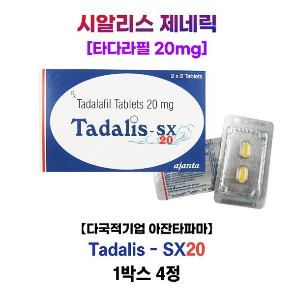 Tadalis-SX 20mg은 타다라필(Tadalafil) 20mg을 함유한 시알리스(Cialis) 제네릭 제품으로, 다국적 제약사 아잔타 파마(Ajanta Pharma)에서 제조한 ED(발기부전) 치료제입니다.