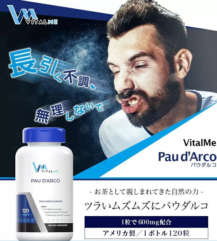 **Pau D’Arco 600mg (VitalMe)**는 남미 아마존 정글에서 자생하는 ‘타베부이아(Taheebo)’ 나무의 내피에서 추출한 천연 허브 성분을 함유한 건강 보조제입니다.