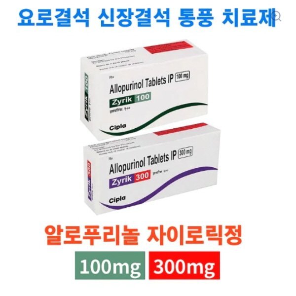 [Zyrik] 알로푸리놀 100mg / 300mg – 요로결석 · 신장결석 · 통풍 치료제 (100정)